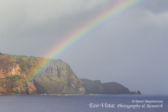 Pitcairn Island as we left with a stunning rainbow.